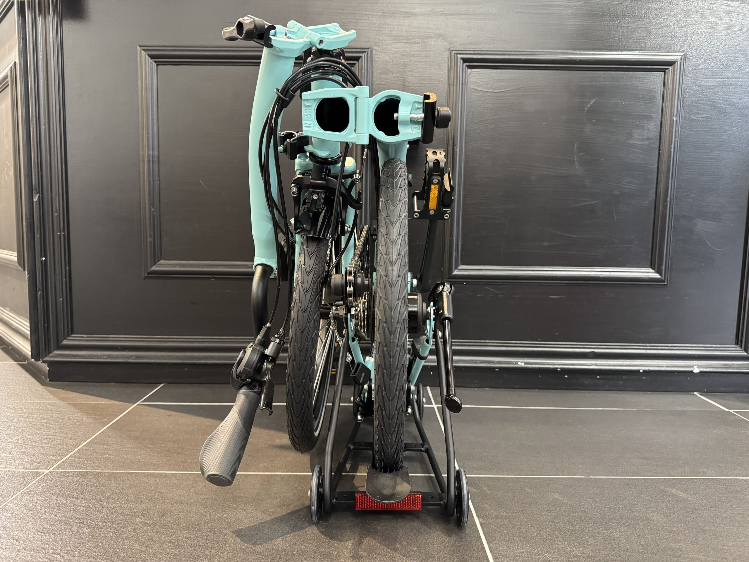 ブロンプトン専用設計なので、走行時や折りたたみ時の干渉がなく、スッキリと装着できます。
