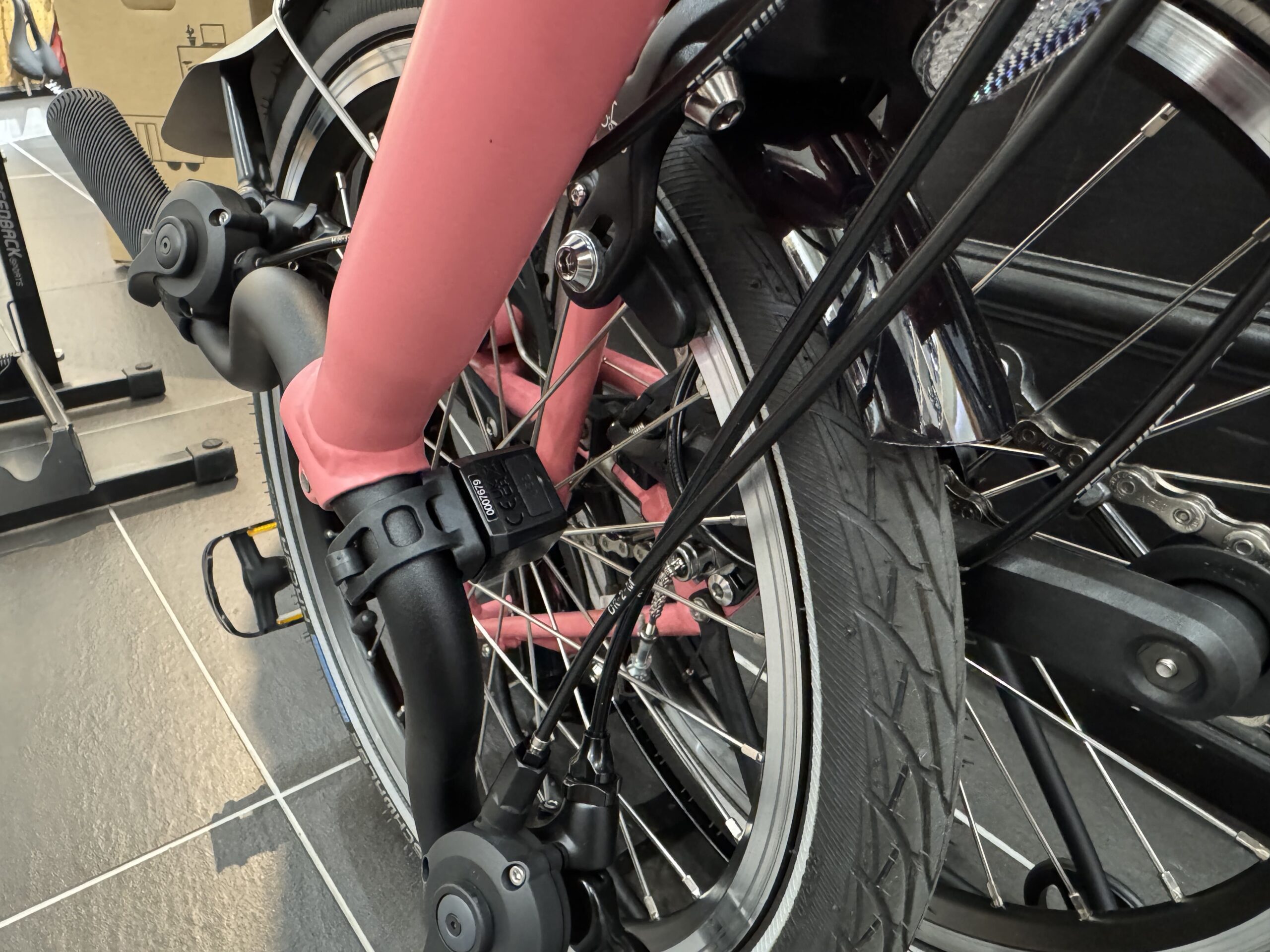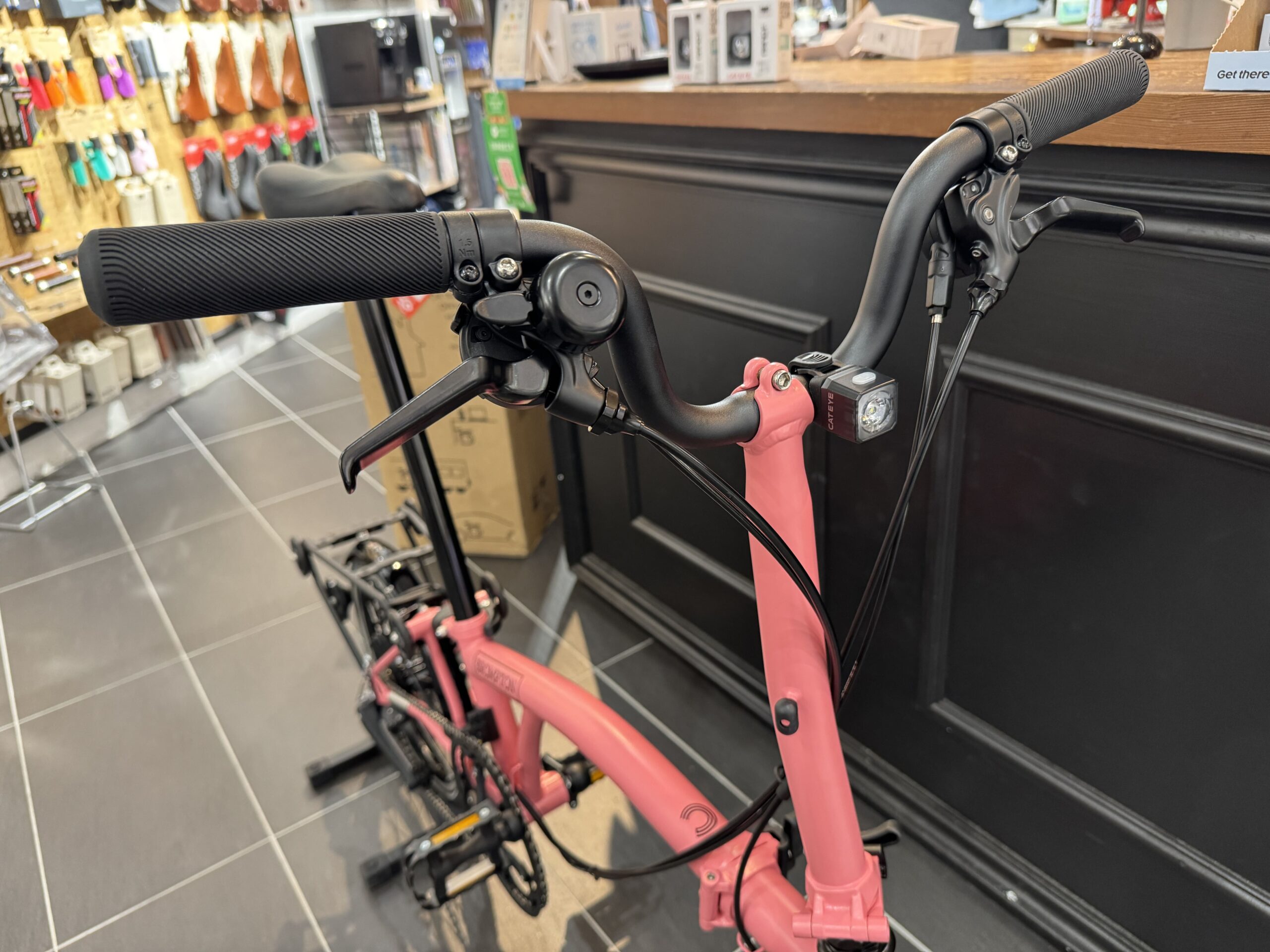 ハンドル周りに取り付けやすく、点灯・消灯の操作もスムーズ。ブロンプトンの折りたたみにも干渉しないので付けっぱなしでOK。