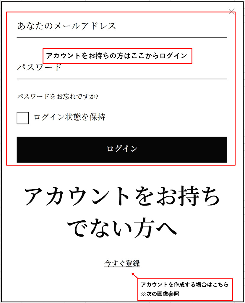 ▼ログイン/アカウント作成ページ