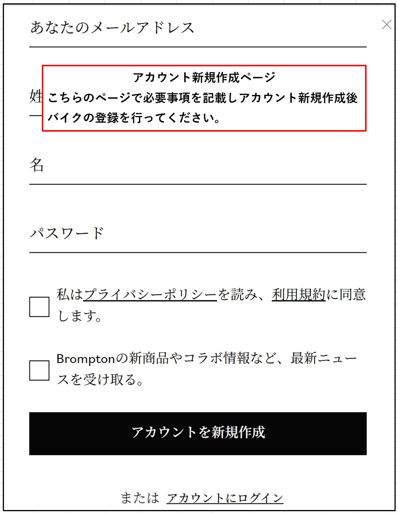 ※アカウントなしでも自転車の登録自体は可能ですが、後から確認する際にアカウントが必要となりますので、最初に作っておくことをおすすめします。