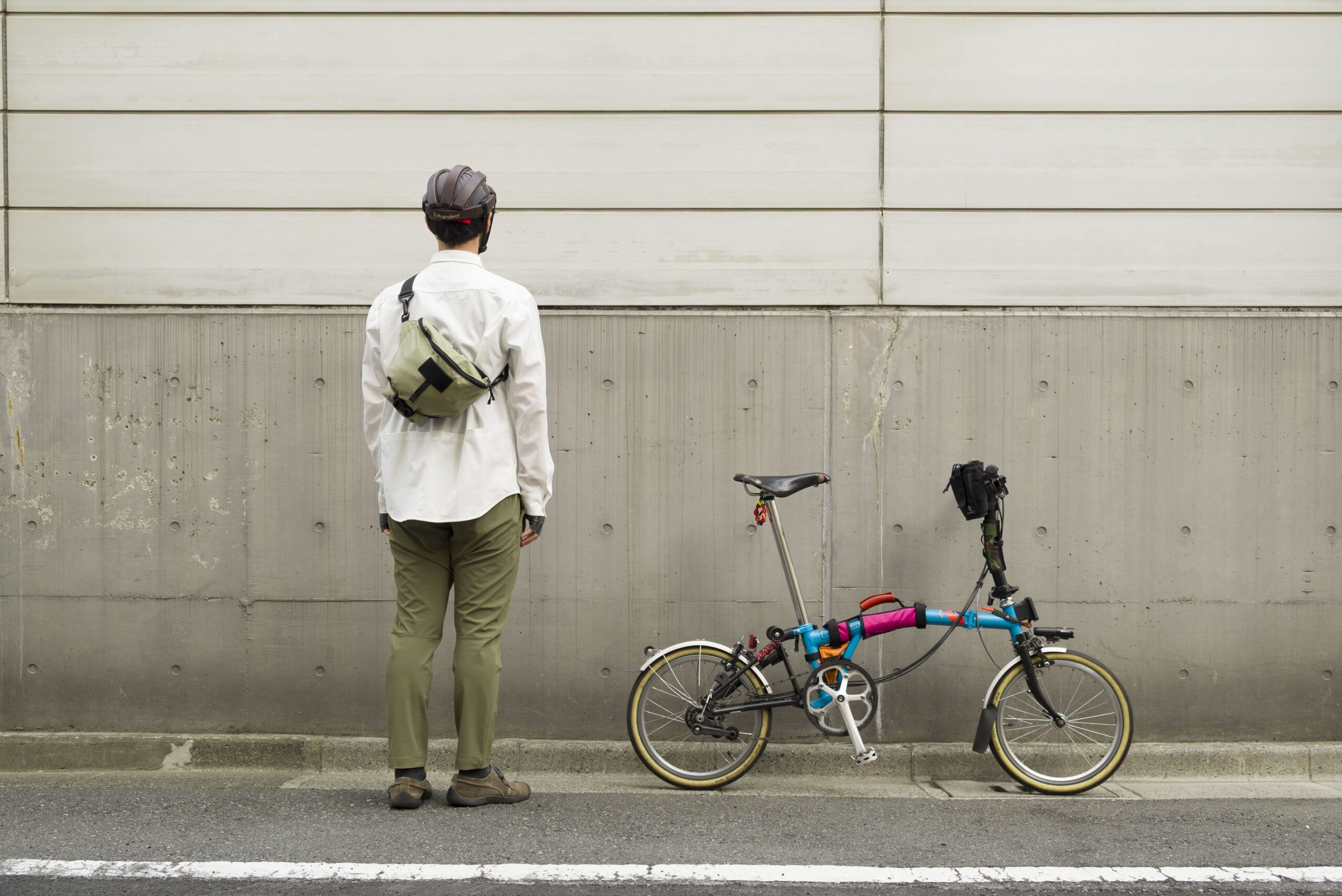 ショルダーストラップを使えばボディバッグとして日常使いができ、BROMPTONやTyrellではハンドルバーに装着してフロントバッグとしても使用可能。折りたたみ自転車との相性も良く、走行時も扱いやすいサイズ感です。
