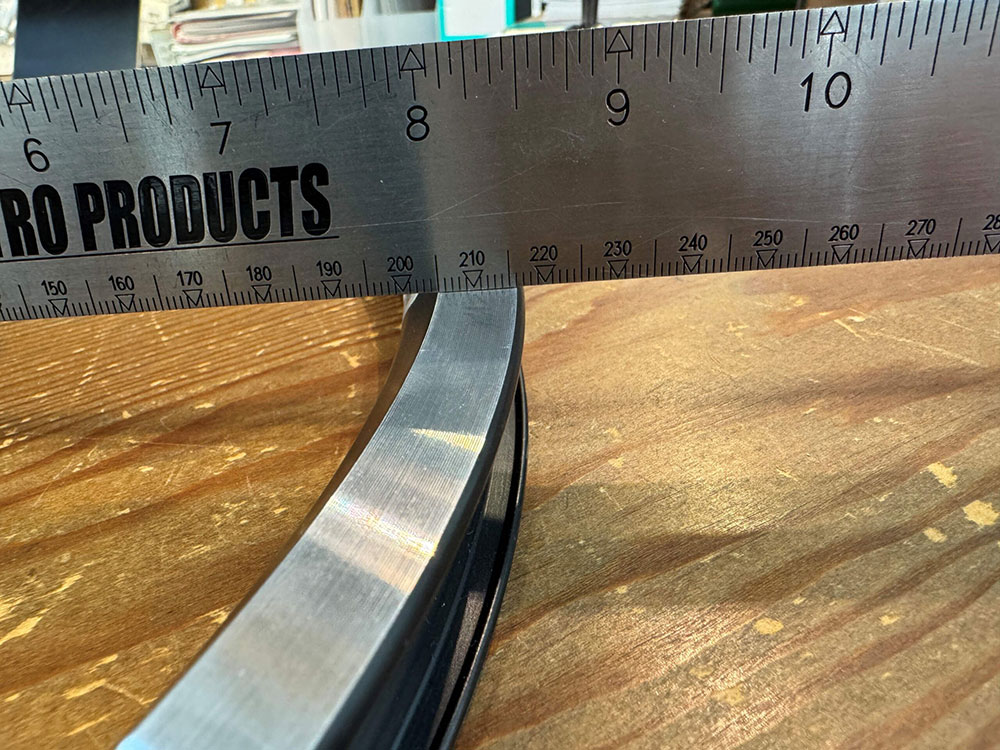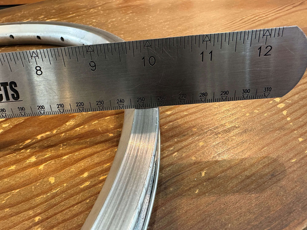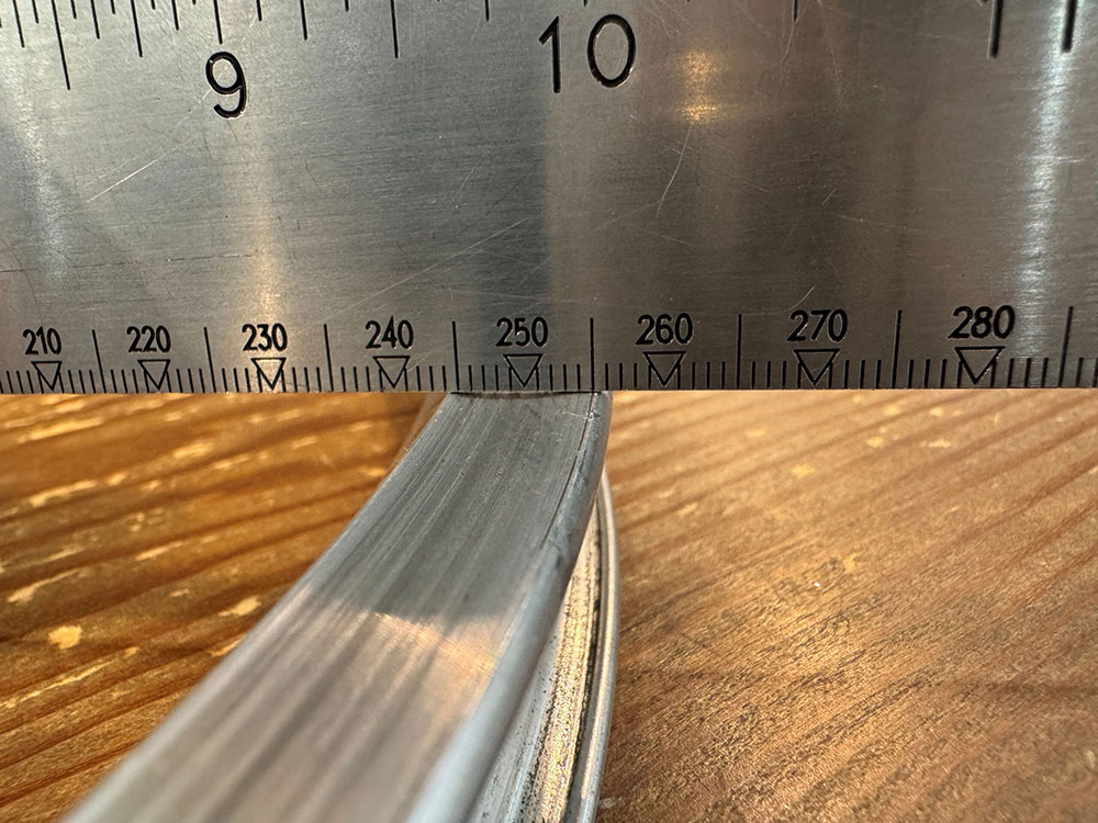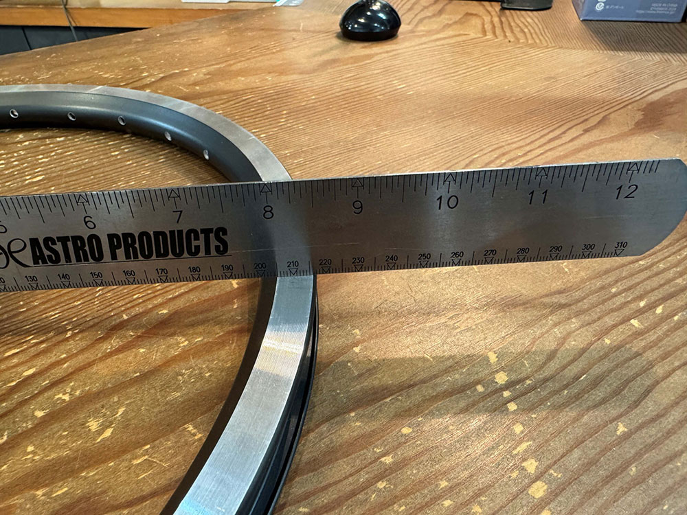 今回お預かりしたホイールも、新品のリムと比べるとブレーキ面が削れて凸凹になり、隙間ができている状態でした。写真で見ると一目瞭然ですが、実際には目視だけでこの摩耗を正確に判断するのはなかなか難しいものです。