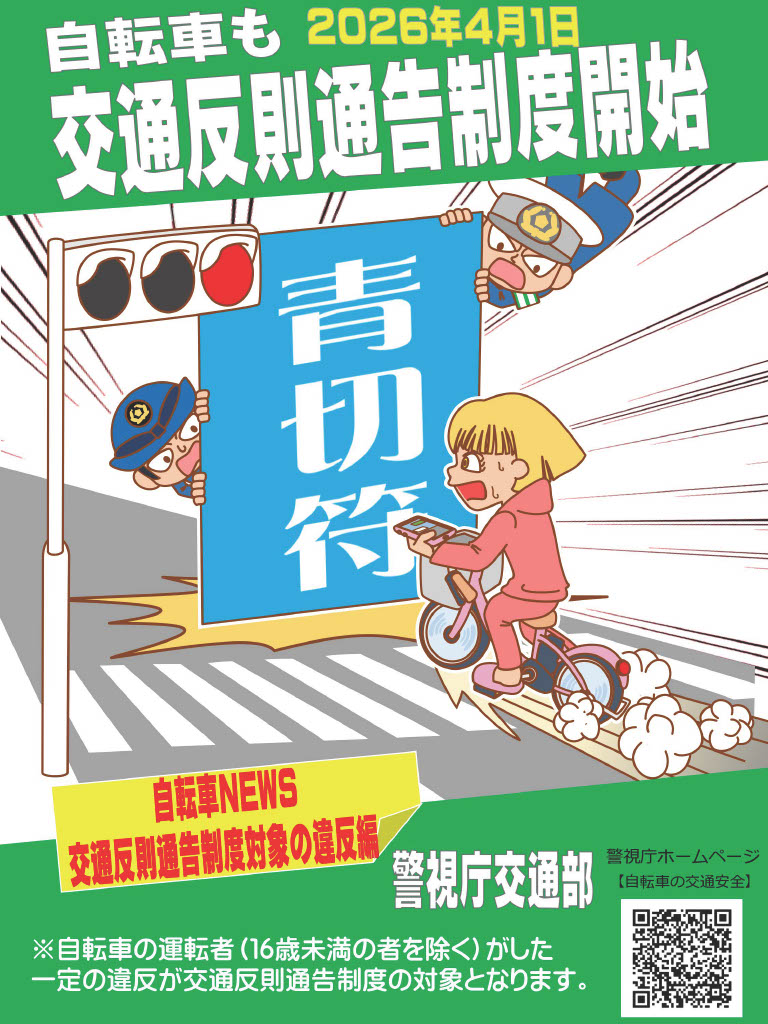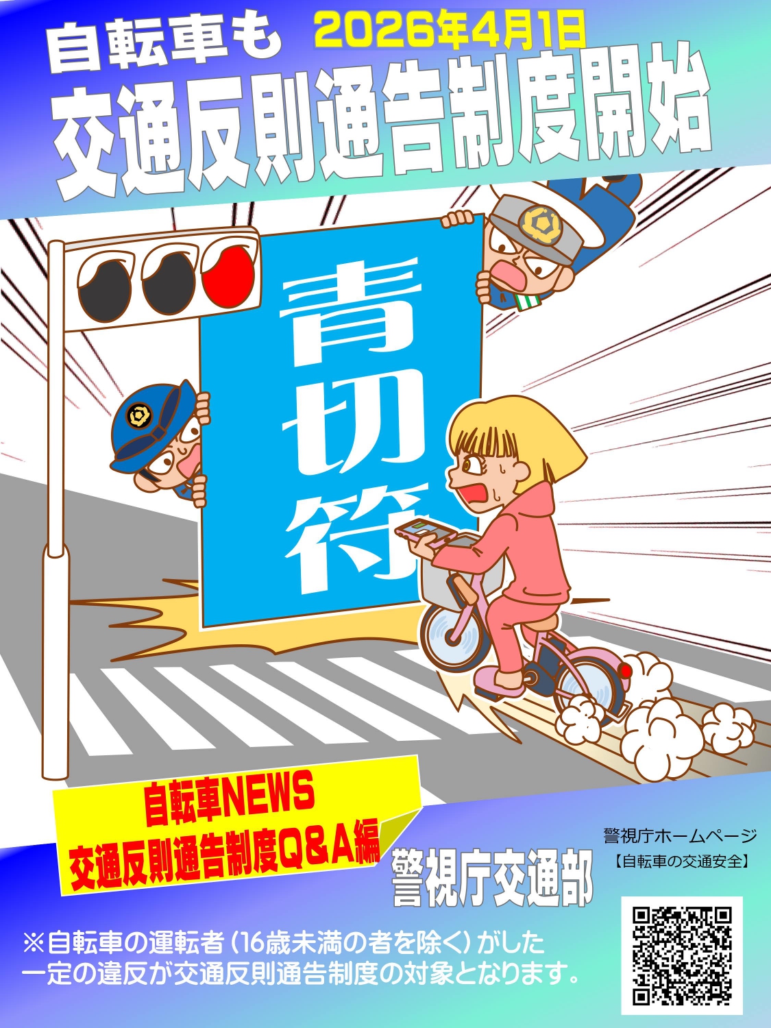 2026年4月より、自転車にも「交通反則通告制度」が導入されます。