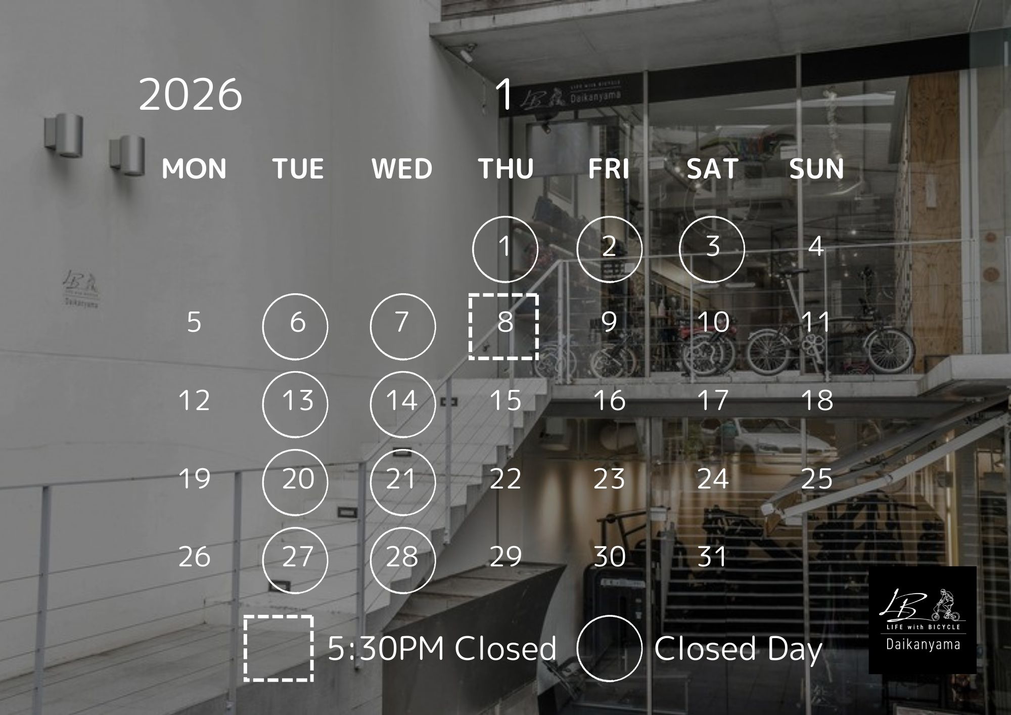 また、1月8日(木)のみ17:30までの短縮営業となりますので、ご来店を予定されているお客様はご注意ください。